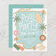 Prepare-se para fazer um grande sucesso com o nosso convite de festa de piscina exclusivo e dentro do orçamento! Esta ilustração desenhada à mão captura a cena perfeita de uma festa de piscina de verão. A vibrante piscina ocupa o centro do palco, completa com bolas de praia coloridas e boias infláveis. Palmeiras exuberantes e bandeirolas alegres criam uma atmosfera festiva. Há balões no canto superior direito e duas toalhas e um guarda-sol de praia no canto inferior esquerdo. Há três boias, uma parece um donut, uma é uma melancia e a outra é um colchão inflável amarelo clássico. O estilo caprichoso e as cores brilhantes capturam a emoção e a energia de uma celebração de verão. A tipografia fofa adiciona um toque divertido, tornando-a perfeita para aniversários de crianças. O nome da aniversariante está em letras cursivas e a data
