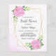 Estes convites de chá de panela apresentam um design floral de cor aquosa com flores de hydrangea cor-de-rosa, folhas e uma falso estrutura geométrica dourada. Fontes de chá de panela correspondentes também disponíveis.