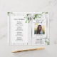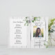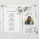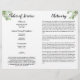 Este é um dos meus modelos mais complexos. Fácil de usar, mas demorará um pouco. Todo o texto é ajustável. Uma opção fotográfica. Programa simples e elegante para uma celebração do serviço de vida. Seção do obituário e espaço de texto extra na parte traseira para poemas, obrigados ou aspas de bíblia. Bordas florais brancas elegantes. Falso quadro de folha prateada.
