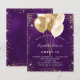 Para uma elegante festa de aniversário 16, 16. Um fundo roxo profundo da moda. A cor roxa é irregular. Decorado com brilho sujo de ouro, faíscas e balões. Personalize e adicione um nome, idade e detalhes da festa. O nome é escrito com um script de estilo manuscrito