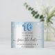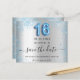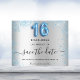 Uma garota e moda Salve o cartão de data para uma doce festa de aniversário 16, 16. Um fundo com aspecto fino prateado decorado com poeira brilhante azul. Personalize e adicione uma data e nome/idade. O texto: Salvar a Data é gravado com um script de estilo com letra de tendência grande. Número 16 com uma fonte no estilo do balão.