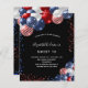 Um fundo preto chic. Decorado com balões patrióticos coloridos em azul vermelho e branco. Personalize e adicione um nome e detalhes da parte. O nome é escrito com um script de estilo manuscrito.