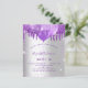 Um fundo na moda falsa de prata. Decorado com brilho púrpura e balões. Personalize e adicione um nome e detalhes da parte. O nome é escrito com um script de estilo manuscrito