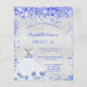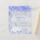 Um fundo de olhar mal prateado. Decorado com confete azul real, brilhos. Personalize e adicione um nome e detalhes da parte. O nome é escrito com um script de estilo manuscrito.