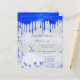 Um fundo de olhar mal prateado. Decorado com a aparência real de pingar tinta azul, faíscas. Personalize e adicione um nome e detalhes da parte. O nome é escrito com um script de estilo manuscrito.
