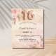 Um fundo rosa dourado, rosado, rosado e roxo, com aspecto metálico. Decorados com ouro rosa e flores, rosas, grama-pampas. Personalize e adicione um nome e detalhes da parte. O número 16 é escrito com uma fonte no estilo do balão.