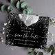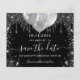 Uma moça e moda Salvem a data para uma doce festa de aniversário 16, 16. Um fundo preto decorado com pingos falso de luz prateada, faíscas e balões. Personalize e adicione uma data e nome/idade. O texto: Salvar a Data é gravado com um script de estilo com letra de tendência grande.