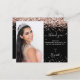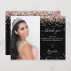 Um obrigado fotográfico para um aniversário de 16 (ou qualquer idade) Doce Na frente: Adicionar uma foto de tamanho vertical. Uma cor preta de fundo, decorada com rosa dourada, poeira brilhante. Personalize e adicione um nome e sua nota de agradecimento.