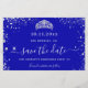 Uma garota e moda Salve o cartão de data para uma doce festa de aniversário 16, 16. Um fundo azul real colorido. Decorado com pó falso prateado e uma tiara, coroa. O texto: Salvar a Data é gravado com um script de estilo com letra de tendência grande.