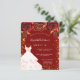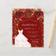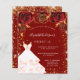 Um convite moderno, na moda e glamouroso para uma doce festa de aniversário 16, 16. Um fundo vermelho com poeira brilhante dourada falsa, um vestido branco e rosas vermelhas, florais. O nome é escrito com um moderno estilo escrito à mão. Personalize e adicione os detalhes da sua festa.