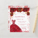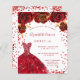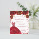 Um convite moderno, na moda e glamouroso para uma doce festa de aniversário 16, 16. Um fundo branco com brilhos, um vestido vermelho e rosas vermelhas, florais. O nome é escrito com um moderno estilo escrito à mão. Personalize e adicione os detalhes da sua festa.
