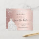Uma garota e moda Salve o cartão de data para uma doce festa de aniversário 16, 16. Um fundo na moda rosa de ouro decorado com falso brilho prateado, faíscas e um vestido. Personalize e adicione uma data e nome/idade. O texto: Salvar a Data é gravado com um script de estilo com letra de tendência grande.
