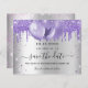 Um fundo com aspecto fino prateado decorado com brilho violeta, lavanda e balões. Personalize e adicione uma data e nome/idade. O texto: Salvar a Data é gravado com um script de estilo com letra de tendência grande.