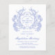 Um elegante brasão floral azul vintage francês toma o centro das atenções neste convite de aniversário atemporal. Ornamentado, formal e muito feminino fará qualquer aniversariante se sentir muito especial. Suprimentos de festa coordenados estão disponíveis.