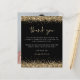 Obrigado Quinceañera Foto Brilho Dourado Preta no Orçamento. Uma alternativa PEQUENA de 4,5” x 5,6” com preço acessível. Disponível em PAPEL CARTÃO 110 lb SEMI-BRILHO, que é a opção padrão (mais grosso para convites), OU PAPEL 80 lb COM ACABAMENTO EM SEDA (ideal para inclusões). As bordas de brilho dourado falso estão no topo e na parte inferior da frente e substituem a foto no verso por uma de sua festa favorita. Obrigado está escrito em um estilo de letra manuscrita em dourado coordenado. Personalize facilmente o restante do texto. Você também pode alterar a cor do texto e do fundo através da opção personalizar ainda mais, se desejar.