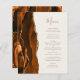 A borda esquerda deste elegante cardápio moderno de casamento mostra uma cor de água laranja queimada, aparada com uma falsa brilha de ouro. O texto personalizável combina o script de escrita manual dourada e as fontes de impressão em fundo de marfim. O verso apresenta uma design de cor laranja queimada e dourada.