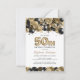 Este elegante convite de 50 anos apresenta balões brilhantes em vários tons de ouro e preto com balão de ouro número 50. A queda de galhardetes e confete em preto e ouro completa a vibração da festa. A parte traseira apresenta faixas diagonais douradas. Fácil de personalizar clicando em "Personalizar".