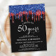 Convide amigos e família para a sua festa de aniversário com estes elegantes convites de aniversário azuis, prateados e negros, e suprimentos de festa. Este elegante convite de aniversário chic apresenta 'Saúde a 50 Anos', personalize anos por 30, 40, 60, 70, 80, 90 ou qualquer idade. Este design azul e preto é perfeito para eventos temáticos da polícia, festa da polícia e polícias, assim como celebrações corporativas e comerciais. Veja nossa coleção para combinar favores, suprimentos e presentes de festa de aniversário. COPYRIGHT © 2020 Judy Burrows, Black Dog Art - Todos Os Direitos Reservados. Orçamento Elegante Blue Silver Black Glitter Drips 50 Convite de aniversário