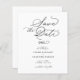 Um save the date com elegante caligrafia vintage inspirada em fontes de texto tradicionais.