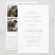 Elegante modelo de convite de casamento simples minimalista romântico econômico e acessível, com RSVP e detalhes dos convidados, apresentando uma caligrafia elegante e sofisticada, com escrita à mão em dourado falso, um código QR para leitura por scanner (gerado automaticamente com o link do seu site) e 4 fotos em colagem personalizável. Fácil de personalizar com as suas fotos e detalhes do noivado em ambos os lados! O convite é adequado para casamentos modernos e estilosos da primavera, verão, outono e inverno.