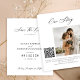 Casamento de noivado personalizado moderno e minimalista com foto de BARATO BUDGET salve o modelo de cartão de data com seu código QR para o site (gerado automaticamente com seu endereço de URL). Adequado para primavera, verão, outono ou casamentos elegantes formais de inverno.