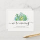 Anuncie sua jogada e novos detalhes de endereço para que seus clientes, família e amigos saibam dessa mudança com este cartão de lançamento de cactos suculentos de aquarela moderno, "Estamos Movendo"