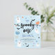 Um convite de festas de primeiro aniversario de Halloween fantasma fofo. Design moderno do Dia das Bruxas para uma festa assustadora! Este convite de aniversário inclui teias de aranha, fantasmas, abóboras, morcegos, aranhas, folhas, candi, estrelas e margaridas. Este convite é excelente para garotinhos!