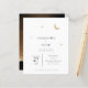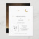 Um convite de casamento celestial moderno minimalista apresenta um design simples e elegante. Inclui uma lua e estrelas em folha de ouro que brilham suavemente, colocados contra um fundo limpo com uma foto no verso que pode ser personalizada. O convite usa tipografia serif clássica, que adiciona um toque tradicional e formal com seu estilo limpo e claro. A combinação de design moderno, detalhes em ouro brilhante e fontes atemporais torna o convite bonito e convidativo, perfeito para anunciar um dia de casamento especial e elegante.