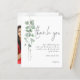 Uma alternativa de orçamento com bom custo-benefício em um tamanho menor de 4,5 x 5,6” semi-brilho 110lbs de peso, que é de espessura semelhante a um cartão postal (no entanto, não é adequado para uso como cartão postal). POR FAVOR, OBSERVE que há UM convite por folha. Orçamento Eucalipto Foto 30º Aniversário Agradecimento. Estilo moderno minimalista com esta botânica com folhagem em aquarela fluindo para baixo no lado esquerdo e texto à direita. Um estilo de letra manuscrita para Agradecimento e o restante do texto que você pode facilmente personalizar. Substitua a foto de amostra no verso pela sua favorita da sua festa.