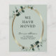 Anúncio de Novo Endereço com Eucalipto Dourado Metálico Orçamento... Nosso cartão de anúncio de novo endereço em verde salvia com motivos botânicos apresenta uma moldura oval metálica em dourado falso adornada com folhas de eucalipto em esmeralda, criando uma borda natural para o texto do anúncio de mudança. O verso do cartão contém todos os novos detalhes que sua família e amigos precisarão para manter contato. O texto de exemplo na frente e no verso pode ser facilmente revisado no modelo de personalização. Por favor, note: Cartões de orçamento não vêm automaticamente com envelopes, mas você pode comprá-los na mesma página ao finalizar a compra.