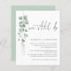 NOTA Há duas opções de papel a escolher para este tamanho (4,5 x 5,6") na faixa de Orçamento. Para este produto, eu recomendaria muito o semibrilho, que é um estoque de cartão de 110 gsm, semelhante em espessura a um cartão postal. A opção Satin é um papel muito mais fino, 80gsm. O padrão é definido como semirbrilho. HÁ UM CONVITE POR FOLHA. Orçamento Eucalipto Ainda Vemos Convite Renovável. Um script manuscrito para Nós ainda fazemos e o resto do texto que você pode personalizar facilmente. Um galho elegante de folhas de aquarela eucalipto corre pelo lado esquerdo.