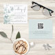 Orçamento Eucalyptus Blue QR Code Convite de Casamento. Um alternativo de 4,5 pol x 5,6 pol com preço inferior. Disponível em um STOCK DE CARTÃO SEMI-GLOSS 110 lb, que é a opção padrão (mais espesso para convites), OU um STOCK de PAPEL THINNER FINISH 80 lb FINISH (ideal para gabinetes). Adicione seu código QR ao seu site de casamento no verso faz com que esta seja uma opção conveniente para seus convidados para RSVP e veja todos os detalhes sem a necessidade de RSVP separado e cartões de detalhes. Você pode criar códigos QR gratuitamente on-line. Basta pesquisar "Criador de código QR" e muitas opções surgem para criar gratuitamente. Um design elegante com folhas delicadas de eucalipto que fazem fronteira com a esquerda e que se desvanecem até uma tonalidade e depois parcialmente sobrepostas pelo texto à direita. O Casamento está em um guião manuscrito de na moda. Personalize facilmente o resto do texto para seus próprios detalhes.