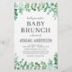Orçamento Personalize este moderno Eucalyptus Watercolor Greenery Primavera Style Baby Brunch Chá ou Sprinkle Invitation em fundo branco com sua mensagem e detalhes. Este convite para na moda inclui folhagem botânica moderna e elegante, com tipografia de na moda para a celebração especial da Mãe a Ser.
