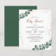 Este folheto de Chá de fraldas de orçamento apresenta galhos e folhas de aquarela eucalipto, quadro de ouro elegante com gotas de ouro e script de tendência. O reverso deste convite é verde-escuro. Para personalização mais avançada deste design, clique em "Personalizar mais". Observe que os envelopes NÃO estão incluídos neste design. Se precisar de envelopes, verifique nossa coleção ou adquira-os separadamente do mercado.