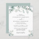 Convite de casamento multifuncional, acessível ao orçamento, com aquarelas de verde sage eucalipto verde verde verde, na moda e tipografia de cinza mole. No verso, insira o endereço do seu site de casamento para criar um código QR para seus convidados digitalizarem para RSVP on-line e obter detalhes adicionais de casamento, como instruções e acomodações.