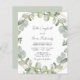 Simples e elegante é este modelo de convite para o casamento do eucalipto verde sábio. Apresentando folhas de cor de água eucalipto dispostas em forma de coroa sobre anéis circulares dourados. Personalize o texto para criar algo realmente exclusivo.