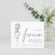 Um valor para o alternativo do ORÇAMENTO em tamanho menor de 4,5 x 5,6" de semirbrilho de 110 lbs, que é de espessura semelhante a um cartão postal (no entanto, não é adequado para uso como cartão postal). POR FAVOR, OBSERVE QUE HÁ UM convite por folha. Eucalipto Decidimos Que O Casamento Para Sempre Salve A Data. Uma tipografia na moda em preto para a palavra Para sempre complementando o resto do texto que você pode facilmente personalizar, com elegantes folhas Watercolor eucalipto à esquerda. Na parte de trás, um verde coordenador.