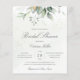Belo chá de panela de barato com aquarela eucalipto e folhas de ouro com roteiro de caligrafia.