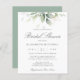 Belo chá de panela com aquarela eucalipto e folhas de ouro.