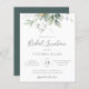 Belo convite para o almoço de noiva com aquarela eucalipto e folhas de ouro.