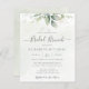 Bonito convite para brunch bridal com aquarela eucalipto e folhas de ouro.