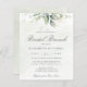 Bonito convite para brunch bridal com aquarela eucalipto e folhas de ouro.