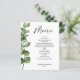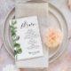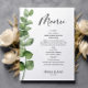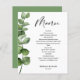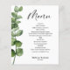 Placa de menu plano Eucalyptus. Elevem sua experiência de jantar de casamento com nossos belos cartões de cardápio de casamento adorados com lindas folhas de eucalipto. Concebidos para complementar o vosso elegante caso, estes cartões de menu adicionam um toque de beleza natural e sofisticação às vossas mesas de recepção. As opções personalizáveis estão disponíveis porque ele é criado como modelo, permitindo que você personalize os cartões de menu com seus nomes, data de casamento e uma seleção de pratos incríveis. Convide seus hóspedes para participar de uma viagem culinária com cartões de menu que capturem a essência da beleza natural. Com nossos cartões de cardápio de casamento, adorados pelo eucalipto, você certamente deixa uma impressão duradoura e cria memórias queridas de seu dia especial. Para itens correspondentes, siga o link: https://www.zazzle.com/collections/eucalyptus_green_symphony_g140-119861040570325510 ou simplesmente escreva G140 na caixa de pesquisa desta loja (compro). Se precisar de ajuda para personalizar, entre em contato com a loja