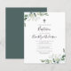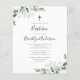 Um convite moderno ao eucalipto verde ao batismo. **POR FAVOR LEIA ANTES DE COMPRAR** Nossa pequena faixa de papelaria orçamental mede 4,5" x 5,6" e ajustado envelope A6, que estão disponíveis em todos os tipos de cores em sua loja de papelaria local ou você pode adicionar brancos ao seu pedido antes de fazer o check-out. O estoque de cartão é branco brilhante, com acabamento semirbrilhante e um peso de 110 lbs, adequado para convites. NÃO aconselhamos você a escolher a opção de papel satin, pois é um papel de 80 lb muito mais fino, que é mais parecido com as páginas de revistas do que o estoque de papelão. Se preferir um convite clássico de tamanho 5x7 impresso no estoque de cartão de 120lb com um acabamento mate, você pode transferir esse design para uma placa plana usando as opções de design de transferência. As placas planas não estão na faixa de orçamento, mas você tem uma variedade maior de tamanhos e opções de estoque de cartão e elas são enviadas com envelopes. A forma e o tamanho mais adequados ao design aparecerão nas opções de transferência do design. Se você fizer alterações na forma ou no tamanho ou escolher outro produto e o design for cortado de alguma forma ou não parecer direito na página, você precisará usar o Serviço de Design ao Vivo para que alguém ajuste o layout para você, a menos que você se sinta confortável fazendo isso sozinho. Não há nenhuma verificação manual ou intervenção entre a colocação do pedido e a impressão, portanto o que você vê na tela é o que será impresso e enviado a você. Com isso em mente, por favor, verifique também triplamente se há erros de ortografia ou informações incorretas antes de fazer seu pedido.