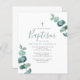 Um moderno convite batizante de eucalipto verde. **POR FAVOR LEIA ANTES DE COMPRAR** Os convites orçamentários têm tamanhos não-padrão (4,5" x 5,6") e o envelope de ajuste mais próximo é A6, que está disponível em todos os tipos de cores em sua loja de papelaria local. O estoque de cartão é branco brilhante, com acabamento semirbrilhante e um peso de 110 lbs, adequado para convites. NÃO aconselhamos você a escolher a opção de papel satin, pois é um papel de 80 lb muito mais fino, que é mais parecido com as páginas de revistas do que o estoque de papelão. Se você preferir um convite de tamanho padrão impresso no estoque de cartão de 120 lb com um acabamento mate, poderá transferir este design para uma placa plana usando as opções de design de transferência acima. As placas planas não estão na faixa de orçamento, mas você tem uma variedade maior de tamanhos e opções de estoque de cartão e elas são enviadas com o envelope de tamanho correto. A forma e o tamanho mais adequados ao design aparecerão nas opções de transferência do design. Se você fizer alterações na forma ou no tamanho ou escolher outro produto e o design for cortado de alguma forma ou não parecer direito na página, você precisará usar o Serviço de Design ao Vivo para que alguém ajuste o layout para você, a menos que você se sinta confortável fazendo isso sozinho. Não há nenhuma verificação manual ou intervenção entre a colocação do pedido e a impressão, portanto o que você vê na tela é o que será impresso e enviado a você. Com isso em mente, por favor, verifique também triplamente se há erros de ortografia ou informações incorretas antes de fazer seu pedido.