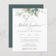 Belo convite para o almoço de noiva com aquarela eucalipto e folhas de ouro.