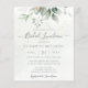Belo convite para o almoço de noiva com aquarela eucalipto e folhas de ouro.
