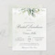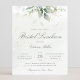 Belo convite para o almoço de noiva barato com aquarela eucalipto e folhas de ouro com roteiro de caligrafia.