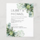 A moderna cor d'água botânica Greenery deixa o tema do casamento com a tipografia moderna. Esta design elegante e moderna é perfeita para o seu elegante casamento de sonho, seja ele primavera, verão, outono ou inverno. Adicione a sua própria imagem de código de verificação de QR no site de casamento ou gere uma usando as ferramentas de personalização do Zazzle. 🎨 por LeahG® Founder da Low Budget Wedding Network®. 🤩 Não se esqueça de agarrar seus 12 x Gratuitos de Lista de Verificação de Planejamento de Casamento de Casamento (nenhuma compra é necessária) através do nosso site aqui: www.lowbudgetwedding.network/planning 🤩