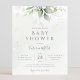 Belo convite para chás de fraldas de orçamento com aquarela eucalipto e folhas de ouro.